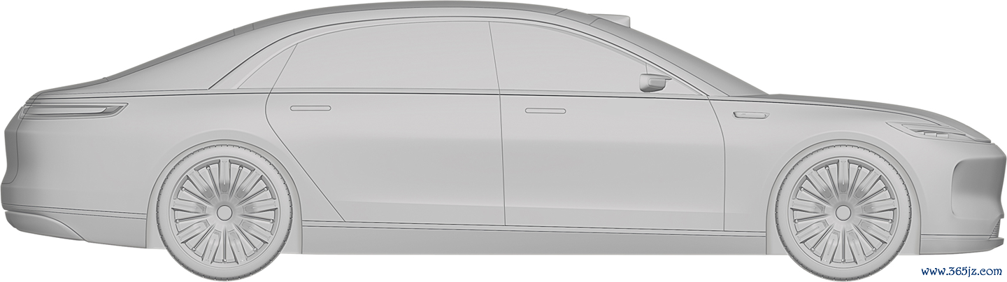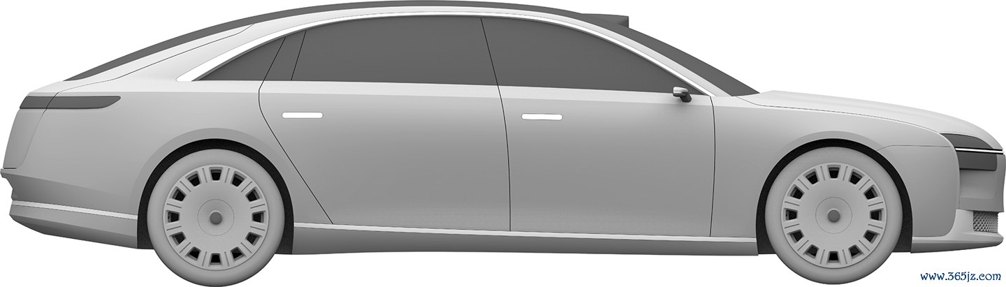 华为终端有限公司还在 2023 年 2 月 8 日申请了另一份汽车外观专利,这款车预计仍是一款“行政旗舰”,不过拥有与上图不同的前脸设计,向内凹进的中网更强调动感风格,并换装了传统后视镜。不过,舒展的车身线条和大尺寸轮毂依旧吸睛。